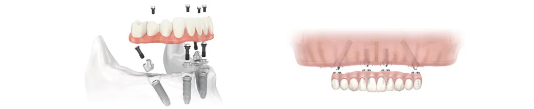 It is indicated for patients who require a full denture replacement. In this approach, All-on-4 dental implants or All-on-6 dental implants strategically positioned implants are used to offer a secure and durable alternative to traditional dentures. [3]